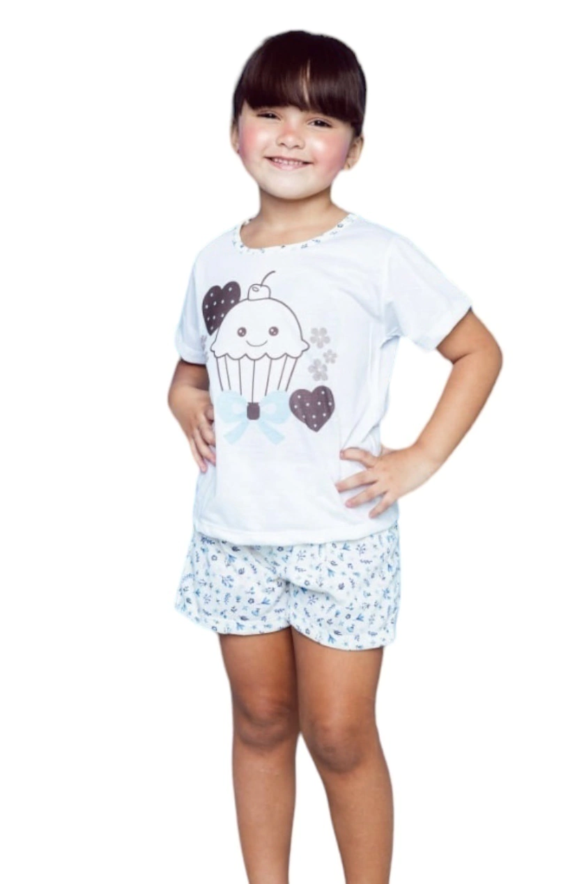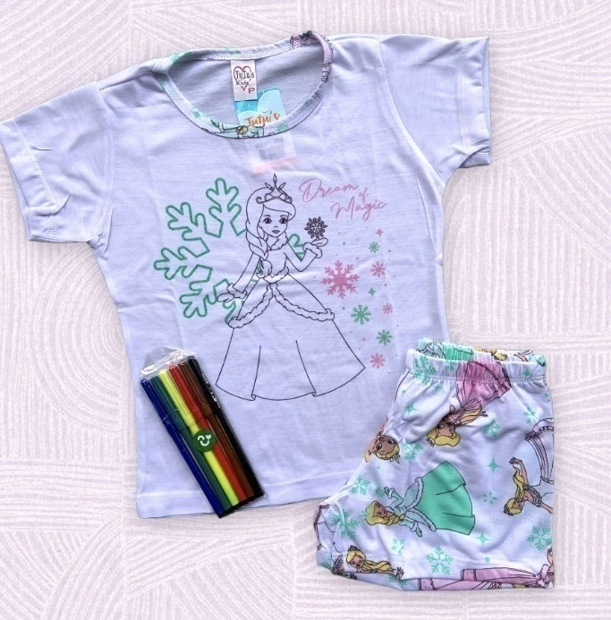 Baby doll estampado composto de camiseta e short com elástico.